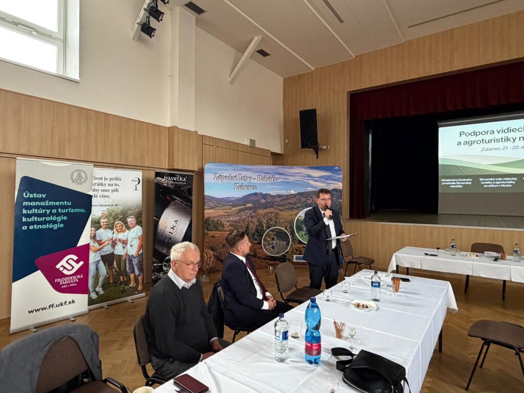 V dňoch 21. – 22. apríla 2026 dr. Kurpaš a dr. Fúsková participovali na jarnom stretnutí Slovenského zväzu vidieckej turistiky a agroturistiky v Zuberci. SZVTA predstavuje dobrovoľnú záujmovú organizáciu, ktorá združuje poskytovateľov služieb na slovenskom vidieku – jej hlavným cieľom je podpora a rozvoj vidieckeho cestovného ruchu a agroturistiky na Slovensku. Konferenciu viedol starosta obce Zuberec, Mgr. Pavol Šroba a predsedníčka zväzu, starostka obce Vinosady, Mgr. Ivana Juráčková. Do besedy sa zapojili aj riaditeľ Slovenskej agentúry životného prostredia, PhDr. Juraj Moravčík, riaditeľ OOCR Klaster Orava, Mário Šutta či Radoslav Oliver Košík, predstaviteľ SACKA, ktorý oboznámil prítomných s aktuálnym stavom čerpania Fondu cestovného ruchu. Podnetné boli aj prednášky o predaji z dvora, zaujímavé boli aj vízie predstaviteľov Národného parku Veľká Fatra. Diskusia o ďalšej spolupráci medzi ústavom a zväzom bola vedená aj s predstaviteľmi SZVTA, Františkom Machom a prof. Petrom Patúšom, tiež s riaditeľom MOD v Zuberci, Mgr. Richardom Janoštínom. Jarné stretnutie zväzu poukázalo predovšetkým na nutnosť medzirezortnej spolupráce pri akcelerovaní aktivít, ale odhalilo aj viaceré problémy súčasného stavu vidieckej turistiky, ktoré si vyžadujú konzistentný a interdisciplinárne vedený prístup. Veríme, že spolupráca so SZVTA bude pokračovať aj v ďalšom období a poskytne zaujímavé výskumné a odborné príležitosti pre študentov i pedagógov ústavu.